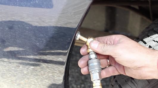 Whether you decide to install an on-board compressor system or not, we always recommend installing an inflation valve so you can manually inflate or deflate the springs. To install the Schrader valve(s), choose a convenient location for mounting the valve. Some popular locations include: